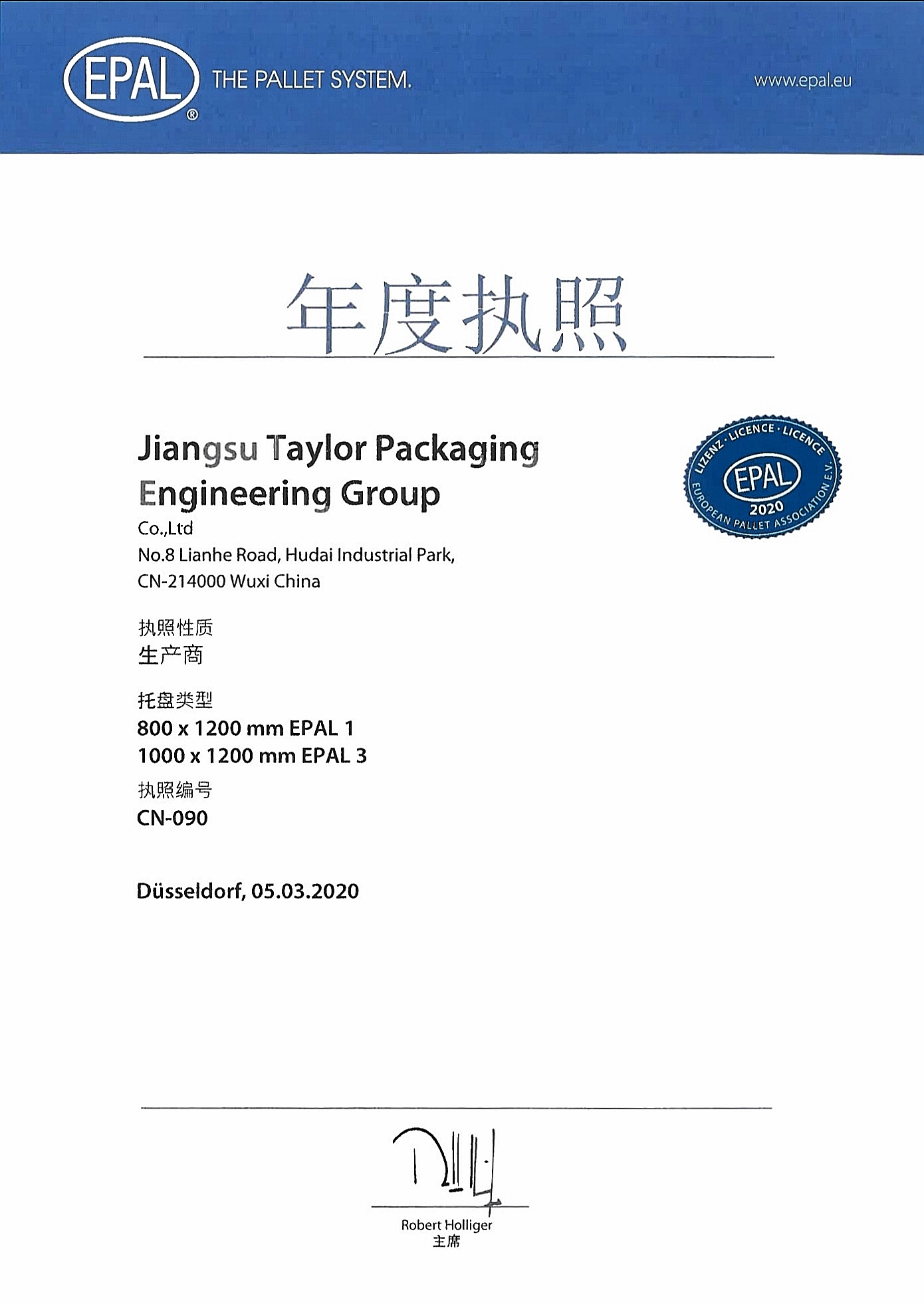 2020年03月05日江蘇泰來包裝工程集團有限公司成功取得EPAL年度執(zhí)照,成為EAPL年度執(zhí)照商